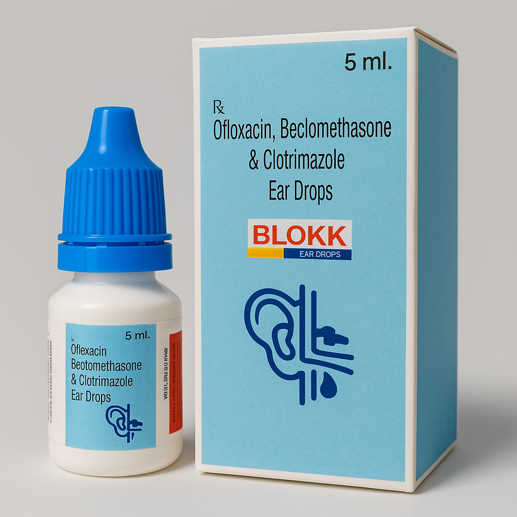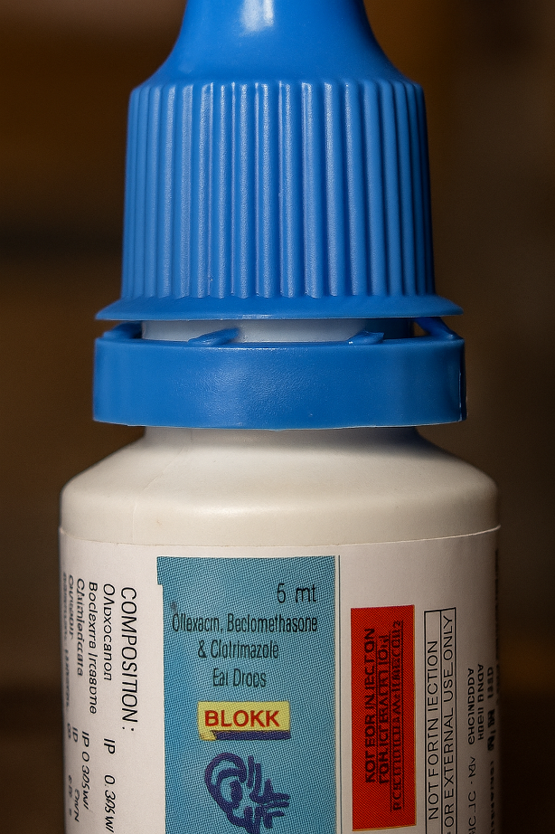 BLOKK Ear Drops is a combination medication used to treat bacterial, fungal, and inflammatory ear infections. It contains: