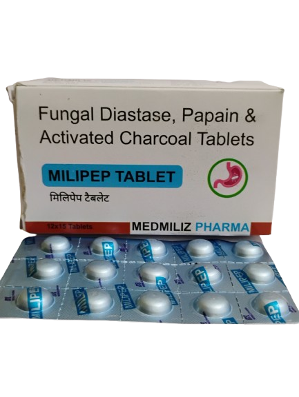 MILIPEP Tablet is a digestive supplement that helps to manage bloating digestion a flatulence. It contains fungal diastase, papain and activated charcoal which are use to relief functional dyspepsia (stomach pain and flatulence). Milipep Tablet work by managing digestive disorder.